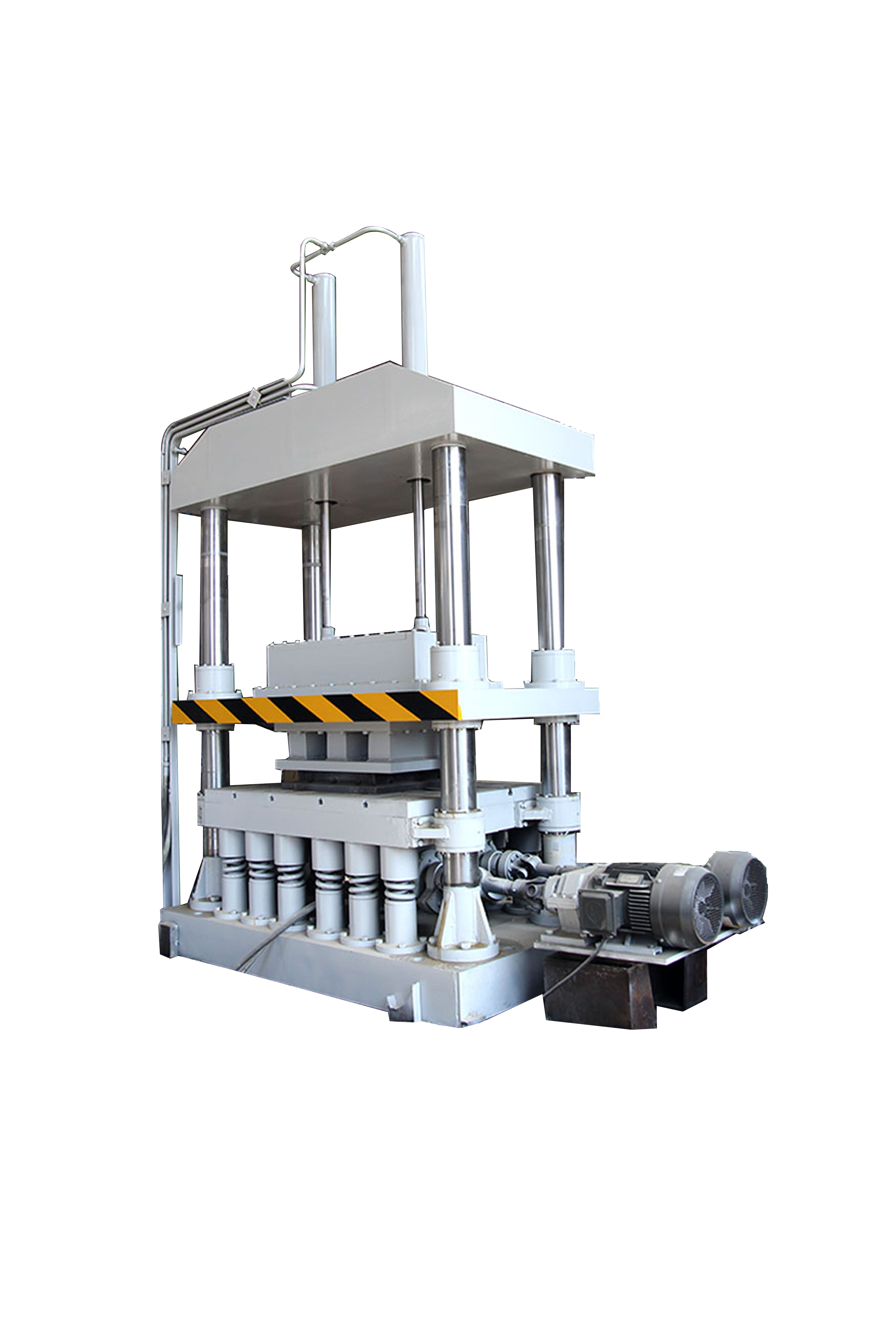 液壓激振合力成型機,是在振動成型原理的基礎上,吸收了振動成型機、油壓機、摩擦壓力機等各種同類機械的優點,結合我廠新專利產品調頻調幅型壓機經過改進創新設計而成的。是一種集慣性振動、電液控制加壓、半干法壓制成型的先進設備。壓制面積較大薄件制品和厚件制品是本系列機型的特長。